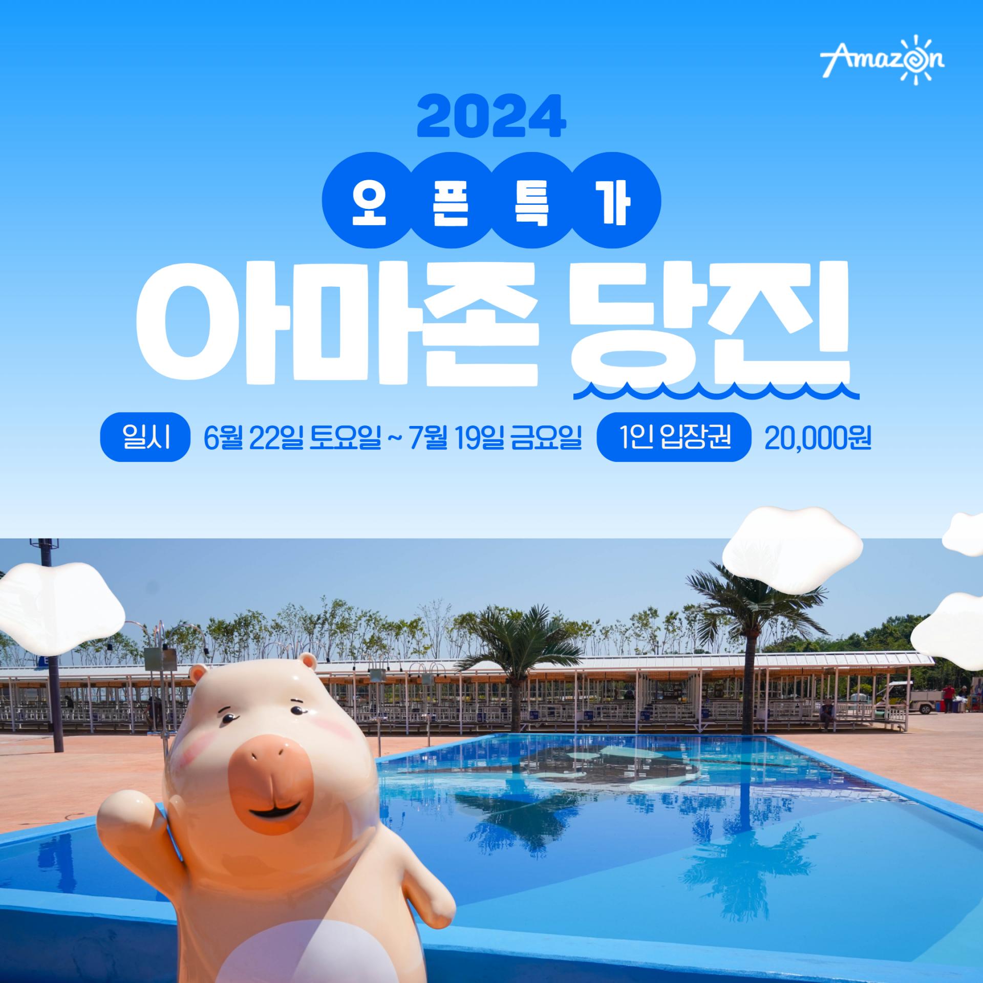 당진 아마존 아쿠아파크는 2024년 7월 19일까지 오픈특가로 1인 입장권 20,000원입니다.