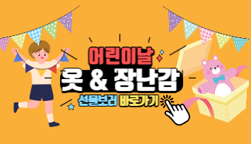 평상시 편한 옷을 구매하지만, 특별한 날이니 귀엽고 화사하고 재미있는 캐릭터가 들어간 옷이나 신발 또는 모자 같은 선물은 어떠세요? 옷과 장남감을 한 번에 구매할 수 있는 사이트가 있어 아래 공유해 드리니 구경해 보세요.